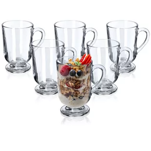 Żeby jeszcze bardziej uprzyjemnić Ci picie Twojego ulubionego cappuccino, szklanka wyposażona została w wygodny uchwyt, więc nie potrzebujesz nawet stolika, by móc z właściwą gracją i komfortem kosztować napój. Zarówno w salonie i kuchni, jak i na hamaku czy tarasie! Ściany szklanki świetnie utrzymują temperaturę napoju, zarówno jeśli uwielbiamy smakować ciepłe napoje, jak i te zimniejsze. Wysoka i smukła forma szklanki znakomicie podkreśla warstwy kawy czy cappuccino, wydobywając z napoju nie tylko pełnię smaku, ale też wyjątkowy wygląd serwowanego płynu. Trzeba to podkreślić - w naszej szklance w efektowny i oryginalny sposób podasz swoim gościom atrakcyjne napoje, wzbudzając zachwyt nie tylko smakiem deserów, ale też sposobem podania. Szklanki sprzedajemy w zestawie po 6 sztuk.