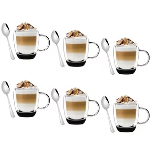 ▪️ Nie oparzysz się ▪️ Łatwo przeniesiesz szklanki (ergonomiczne uchwyty) ▪️ Oryginalnie wyeksponujesz zawartość ▪️ Zachwycisz się efektem zawieszenia w przestrzeni ▪️ Dłużej nacieszysz się ciepłym napojem (działają jak kubki termiczne) Elementy zestawu: ▪️ 6 szklanek termicznych z podwójną ścianką i silikonowym dnem poj. 350 ml ▪️ 6 łyżeczek Wymiary: ▪️ Szklanka: wysokość 10,2 cm, średnica górna 9 cm, pojemność 350 ml * Mogą występować rozbieżności w wymiarach +/- 3mm ▪️ Łyżeczka: