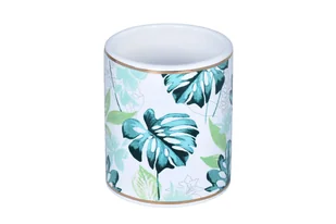 Roślinne motywy szturmem wkroczyły do naszych domów i nieustająco cieszą się popularnością przywołując wakacyjne wspomnienia z gorących wakacji. Kubek kosmetyczny z kolekcji SAMOA z subtelnym nadrukiem liści monstery na białej ceramice, doskonale wpisuje się w ten trend. Złote wykończenie nadaje kolekcji elegancji i charakteru.