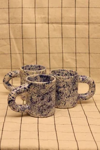 Duży kubek w białym kolorze w kobaltowe ciapki z masywnym uchem. Kubek został ręcznie wytoczony na kole garncarskim, a później ręcznie zdobiony. Ręczna produkcja sprawia, że żadna rzecz nie jest identyczn ...