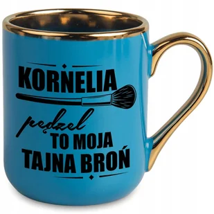 KUBEK 330 ML NIEBIESKI UCHO RANT ZŁOTY PREZENT DLA WIZAŻYSTKI TWOJE IMIĘ