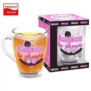 Szklanka kubek o pojemności 300ml. Kalka na szklance reaguje na temperaturę i przy 50℃ yworzy się napis "Jeśli śmiech to zdrowie to ja będę żyła wiecznie". Idealny prezent na każdą okazję. Wysokiej jakości szkło Pojemność: 330ml Wysokość: