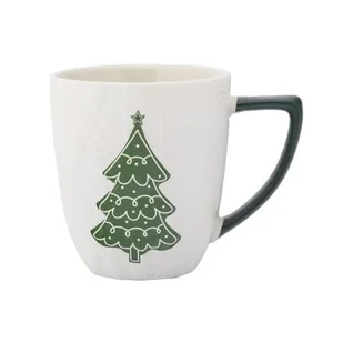 Kubek baryłka z reliefem Choinka 420 ml + brelok rękawiczka biało-zielony