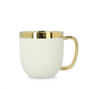 Przeznaczenie Kubek biały SINNES zachwyca swoją wyważoną prostotą, a jednocześnie funkcjonalnością, co wspólnie tworzy niezwykle piękną i elegancką całość. Naczynie nada wyjątkowego charakteru serwowanej w nim kawie oraz herbacie. Cechy charakterystyczne Klasyczna biała powierzchnia dopełniona jest złotymi wykończeniami, które dodają szykowności. Kubek o pojemności 0,28 l posiada ergonomiczny kształt i wyprofilowane ucho, co sprawia, że doskonale leży w dłoni. Materiał Wykorzystana do zrobienia kubka ceramika cechuje się twardością szkliwa, a dzięki temu odpornością porysowania i rozbicia.