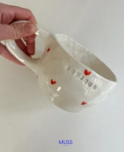 Uroczy kubek z napisem Bonjour. Ręcznie lepiony i malowany. Pojemność 350ml *czas realizacji do 40dni *produkty Muss Ceramics są produktami robionymi pod zamówienie dlatego nie podlegają zwrot ...