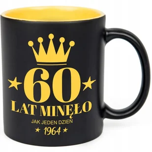 KUBEK CZARNY WNĘTRZE ŻÓŁTE IDEALNY PREZENT NA 60 URODZINY ROCZKNIK WZORY