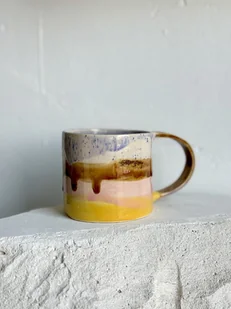 Kubek wykonany i pomalowany został ręcznie. Jest idealny na herbatę:) Materiał: jasna glina Kolory: odcienie beżu, brązu, fioletu, różu, żółtego Zastosowanie: może służyć jako naczynie do kawy, herbaty, wody ...