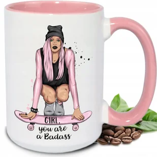 Kubek DUŻY BIAŁY Skate Girl RÓŻÓWE UCHO I WNĘTRZE PIĘKNE TOP WIELE WZORÓW