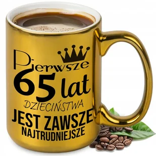 KUBEK DUŻY ZŁOTY PREZENT NA 65 URODZINY ŚMIESZNY URODZINOWE PREZENTY WZORY