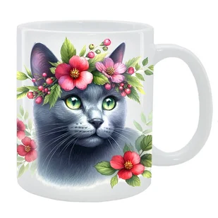 Kubek Kot Rosyjski niebieski - Kolekcja Floral
