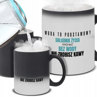 Kubek Magiczny BEZ WODY NIE ZROBISZ KAWY Na Prezent Do Pracy Śmieszne Wzory