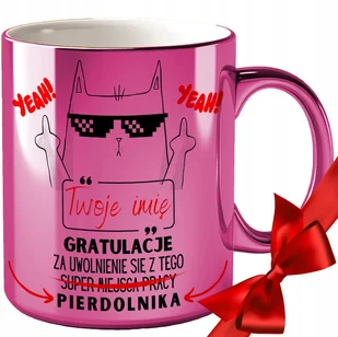 KUBEK NA POŻEGNANIE ODEJŚCIE KOLEŻANKI Z PRACY BIURA GRAWER ZŁOTY RÓŻOWY