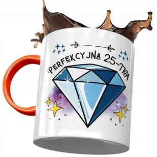 Kubek Pomarańczowy na Urodziny 25 25te 25-te z Nadrukiem ze Zdjęciem + Opakowanie na prezent (wzór 03)