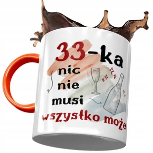 Kubek Pomarańczowy na Urodziny 33 33cie 33-cie z Nadrukiem ze Zdjęciem + Opakowanie na prezent (wzór 02)