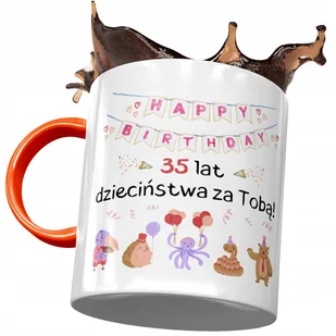 Kubek Pomarańczowy na Urodziny 35 35te 35-te z Nadrukiem ze Zdjęciem + Opakowanie na prezent (wzór 01) numer 274511886