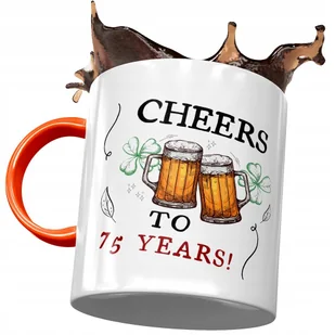 Kubek Pomarańczowy na Urodziny 75 75te 75-te z Nadrukiem ze Zdjęciem + Opakowanie na prezent (wzór 02)