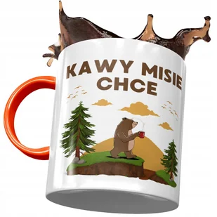 Kubek Pomarańczowy Śmieszny Kawy Misie Chce z Nadrukiem ze Zdjęciem + Opakowanie na prezent (wzór 02)