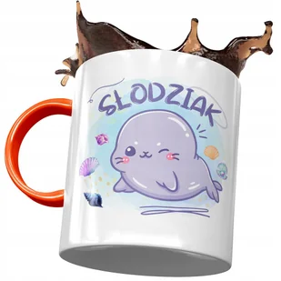 Kubek Pomarańczowy z Foką Foczką Foczunią Prezent z Nadrukiem ze Zdjęciem ⭐ Rozpocznij dzień z uśmiechem! Kubek idealny na Prezent ✅ Szukasz prezentu, który ...