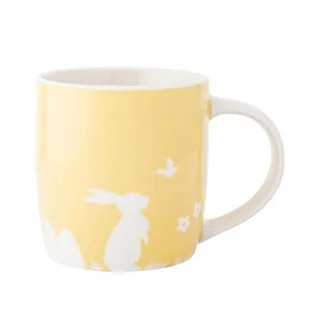 Kubek porcelanowy szeroki 360 ml zajączek z motylem żółty