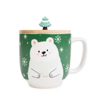 Przeznaczenie Kubki z linii MOLDY będą doskonałe dla osób, które potrzebują porządnej kawy z rana lub gorącej, zimowej herbaty wieczorową porą. MOLDY świetnie sprawdzą się podczas codziennego użytku. Idealne na drobny upominek dla bliskiej osoby. Cechy charakterystyczne Kubek wyróżnia się pokrywką w drewnianym kolorze, na której w roli uchwytu widnieje choinka. Modly został utrzymany w zielonym odcieniu i ozdobiony jest białym misiem.