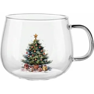 Kubek szklany z dekorem Choinka 430 ml