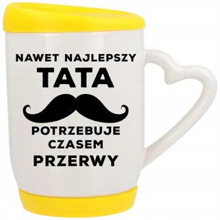 Kubek Ucho Serce z Pokrywką Żółta NAJLEPSZY TATA Potrzebuje Przerwy Wzory