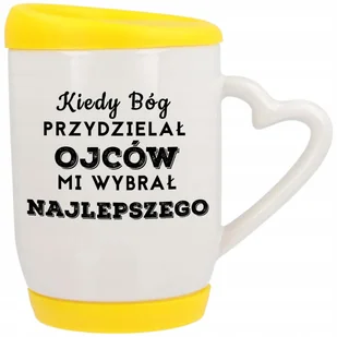 Kubek Ucho z Sercem z Pokrywką Żółta Bóg Wybrał Mi Najlepszego OJCA Wzory