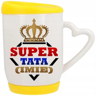 Kubek Ucho z Sercem z Pokrywką Żółta SUPER TATA Korona Bohater IMIĘ Wzory
