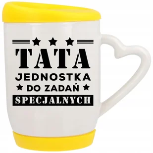 Kubek Ucho z Sercem z Pokrywką Żółta TATA do Zadań Specjalnych IMIĘ Wzory