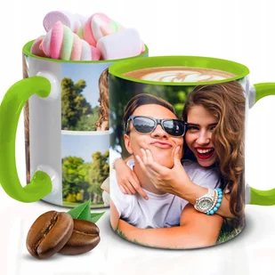 ✨ Kubek z Nadrukiem i Piankami Marshmallow – Wyjątkowy Prezent na Każdą Okazję! ? Kolor: Biały z Zielonym Uchwytem i Wnętrzem oraz Kolorowym Nadrukiem ✏️ Spe...
