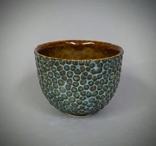 Ceramiczna czarka ręcznie wykonana z beżowej kamionki, inspirowana mikrostrukturami form organicznych, pokryta zielonobrązowym szkliwem, przeznaczonym do kontaktu z żywnością, można myć w zmywarce. Wymiary ...