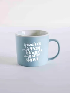 Matowy kubek ceramiczny w jednym z sześciu kolorów z wersetem biblijnym.