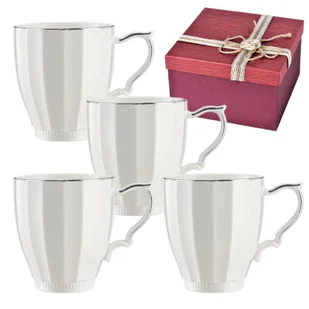Zestaw 4 kubków porcelanowych TEO z platyną w pudełku prezentowym