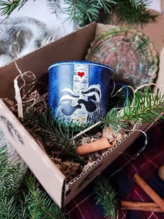 Świąteczny zestaw prezentowy zawiera: - kubek ręcznie malowany 350 ml - podkładkę z żywicy w kształcie plastra drewna: 12cm średnicy i 8mm wysokości To wspaniały prezent dla tych co kochają celebrować ...