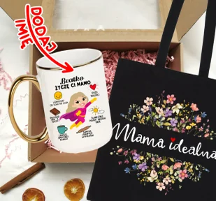 Opis produktu: Zestaw prezentowy dla Mamy - kubek oraz torba na zakupy - najlepsza mama na świecie Gotowy zestaw zapakowany w eleganckie pudełko z okienkiem oraz różowym wypełniaczem. Znajdzie się w środku również miejsce aby dołożyć coś od siebie, jakieś słodycze lub herbatkę ;) Kubek dla Mamy Torba na zakupy- materiał : bawełna, rozmiar około 40 cm na 40 cm , długie ucho Dlaczego warto wybrać ten zestaw? Gotowy do wręczenia: Starannie zapakowany, nie wymaga dodatkowego owijania.