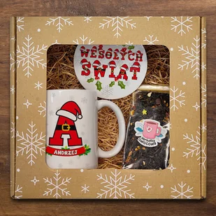 Zestaw prezentowy - świąteczny kubek z imieniem - czapka Mikołaja