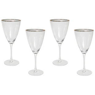 Kieliszki do wina ze szkła dmuchanego. Świętuj specjalne okazje albo uczyń każdą okazję wyjątkową z tym ręcznie wykonanym kompletem kieliszków do wina, które podkreślą niejedną uroczystość. Zaprojektowane w styl retro z grubą nóżką, efektowną strukturą i złotą obwódką, która pięknie podkreśla zaokrąglony kształt. Kieliszki nadają się idealnie do stylowej prezentacji każdego trunku. Szczegóły: Typ produktu: