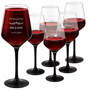 6 spersonalizowanych kieliszków z czarną nóżką i grawerowaną dedykacją dla winiarza.