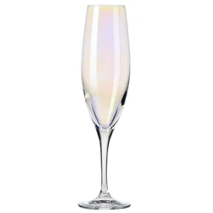Wysokie opalizujące kieliszki Rainbow wprawdzą się doskonale przy serwowaniu szamapana, ale i deliaktnych drinków na bazie win musujących. Perłowe kieliszki zostały wykonane z najwyższej jakości krystalicznego szkła z efektem opalu, które pięknie odbija światło w milionach kolorów i z pewnością przyciągnie uwagę wielu osób. Wysoka czarka typu flute, zdobiona specjalną połyskującą powłoką, w połączeniu z długą nóżką i stabilną stopą, świetnie prezentuje się zarówno we wnętrzach klasycznych, jak i nowoczesnych. Każdy toast stanie się niezapomnianym momentem, gdy światło zatańczy na powierzchni tych pięknych kieliszków, tworząc spektakularny efekt wizualny. Tęczowe kieliszki Rainbow wykonane zostałt z najwyższej jakości szkła Crystalline, dzięki czemu są trwałe i odporne na codzienne użytkowanie, co zapewnia ich długowieczność.