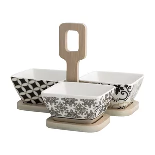 Komplet 3 porcelanowych misek i bambusowej podkładki Brandani Alhambra