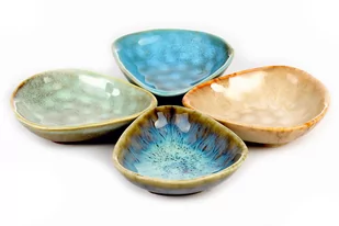 MISKA NA PRZEKĄSKI KOMPLET 4 SZT. 4 RÓŻNE KOLORY REAKTYWNE SZKLI: NIEBIESKI, ZIELONY BEŻ I CIEMNY NIEBIESKI W ZESTAWIE. 3 RÓŻNE KSZTAŁTY 90X90X25MM. KAŻDY W PUDEŁKU Z POKRYWĄ Z ACETATU, ASS.: 3 kształty (Vormen 1..3) / 390X95X35MM, Pudełko z plastikową pokrywką:, 90X90X25MM, 4 x miska na przekąski, ceramika, 90X90X25MM / CFT 1,27, (44.001/40ft HQ )