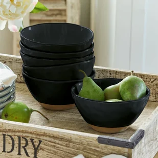 Uroczy, celowo niewygładzony design. Fajans w stylu śródziemnomorskim z błyszczącym szkliwieniem, ciemnym brzegiem i nieszkliwioną podstawą. Świetnie nadają się do jogurtów, owoców, zup, a nawet dekoracji. Zestaw 6 sztuk o uroku rękodzieła. Stylowy i indywidualny efekt sprawia, że te piękne miseczki wyglądają, jakby były wykonane ręcznie.