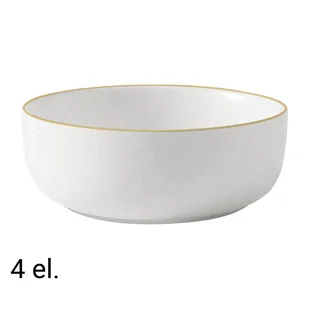 Miski z kamionki MG HOME Artena White to doskonałe połączenie nowoczesnego stylu i codziennej funkcjonalności. Cztery stylowe miski śniadaniowe o pojemności 780 ml zachwycają matową bielą z delikatnym nakrapianiem, która nadaje im wyjątkowy charakter i sprawia, że pięknie prezentują się na każdym stole.