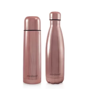 Ekskluzywny termos na napoje dla dziecka o pojemnoĹci 500 ml z powierzchniÄ o chromowym efekcie oraz butelka w tym samym kolorze dla rodzica - luksusowy zestaw dla caĹej rodziny!