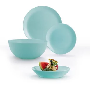 Przeznaczenie Komplet obiadowy Diwali marki Luminarc cechuje klasyczna forma i nowoczesna kolorystyka. Ze względu na swoją minimalistyczna formę odnajdzie się zarówno w nowoczesnych, jak i tradycyjnych aranżacjach. Zestaw obiadowy będzie nie tylko doskonale pasować na co dzień, ale również na większe imprezy rodzinne. Cechy charakterystyczne Serwis obiadowy Diwali został utrzymany w błękitnym kolorze. Po zewnętrznej stronie cały serwis obiadowy jest lekko matowy, co czyni go niezwykle eleganckim.