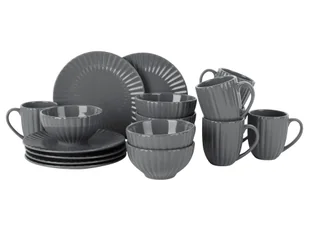 Livarno home Zestaw obiadowy, 18-częściowy, z kamionki Opis produktu wysokiej jakości kamionka można myć w zmywarce i używać w kuchence mikrofalowej 18-częściowy zestaw: 6x talerz 6x miseczka 6x kubek Wymiary: talerz: ok. Ø 20 cm miseczki: ok. Ø 12,8 x wys. 6,7 cm kubki:
