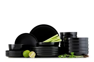SERWIS OBIADOWY VICTO Zestaw obiadowy 6 os. (18el.) | Ø27cm / Ø20cm / 18,5cm / Ø14,5cm | ceramika | kolor: czarny Wspólny domowy posiłek, od zawsze jest elementem łączącym pokolenia i rodzinę. Daje on okazję do rozmowy i spędzenia paru wspólnych chwil, pomiędzy codzienną gonitwą. Nieodzownym elementem każdego udanego posiłku jest zastawa, na jakiej jest on podany.