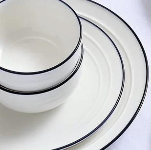 porcelana wzmocniona kolor: biały, czarna obwódka do zmywarki do kuchenki mikrofalowej dla 12 osób