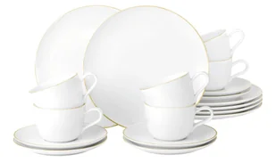 Serwis kawowy Seltmann Liberty Goldline dla 6 osób wykonany z wysokiej jakości porcelany. Biały kolor i elegancka seria Liberty Goldline podkreślą każdą aranżację. Można używać w piekarniku i myć w zmywarce. Gwarancja 2 lata. Produkt niemiecki, trwały i praktyczny.