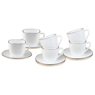 Zestaw filiżanek, 12 el., kwadratowe, opal, biały ze złotym zdobieniem, KINGHoff, KH-1930